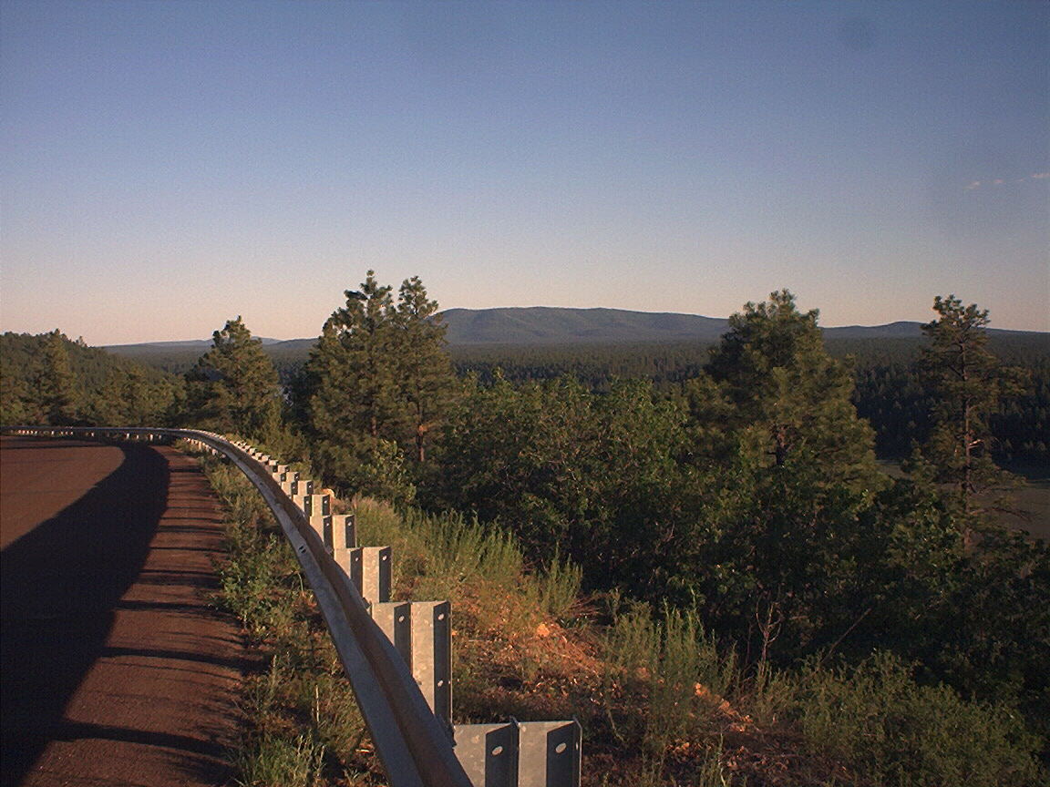 Sunrise and mountain view outside of Flagstaff from bus