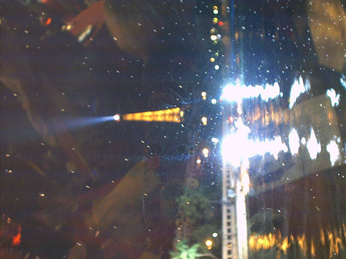 View of the Tour Eiffel at night from a boat on the Seine (should be rotated 90 degrees clockwise)