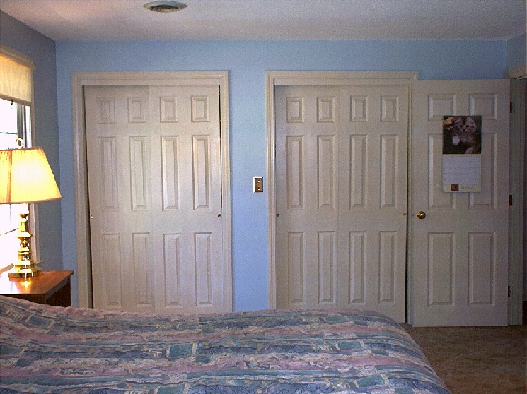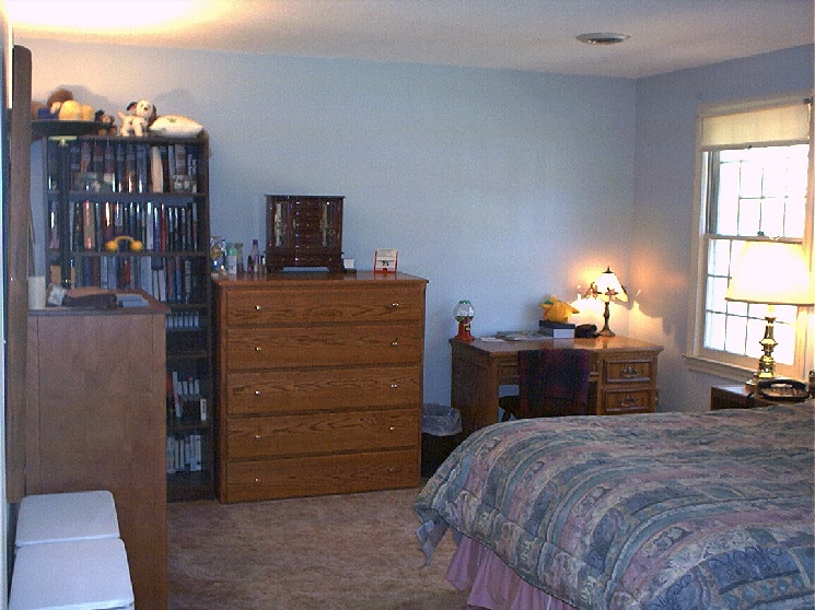 Now we go upstairs. First is a picture of the master bedroom seen from the far corner. Then we look at the master bedroom from the doorway. Next we go to the second bedroom and look at it from the doorway toward the closet. Then we look at the other half of the second bedroom.