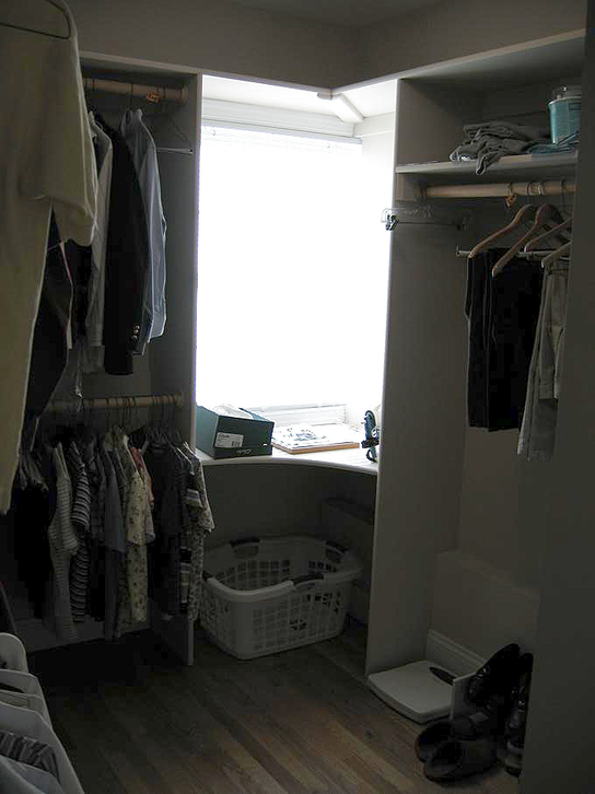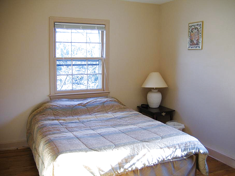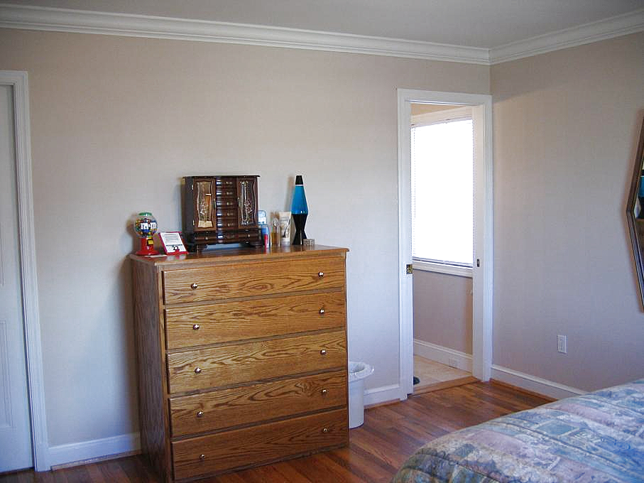 Beyond the guest bathroom is the master bedroom. Here's the master bedroom, looking toward the front of the house. Turning to the left, we look at the master bedroom, toward the back of the house: the doorway to the master bathroom is on the right, and the walk-in closet is on the left.