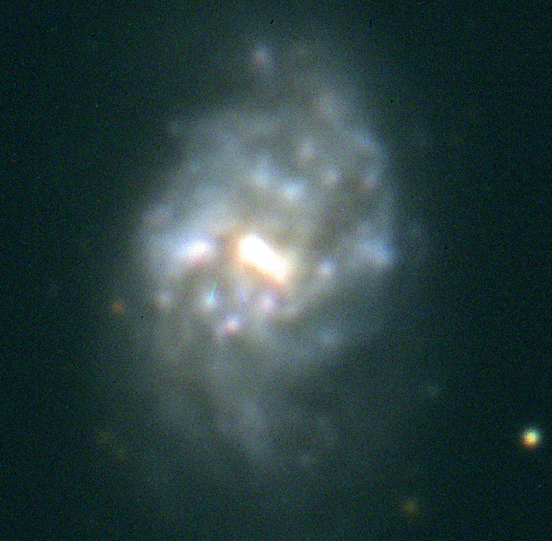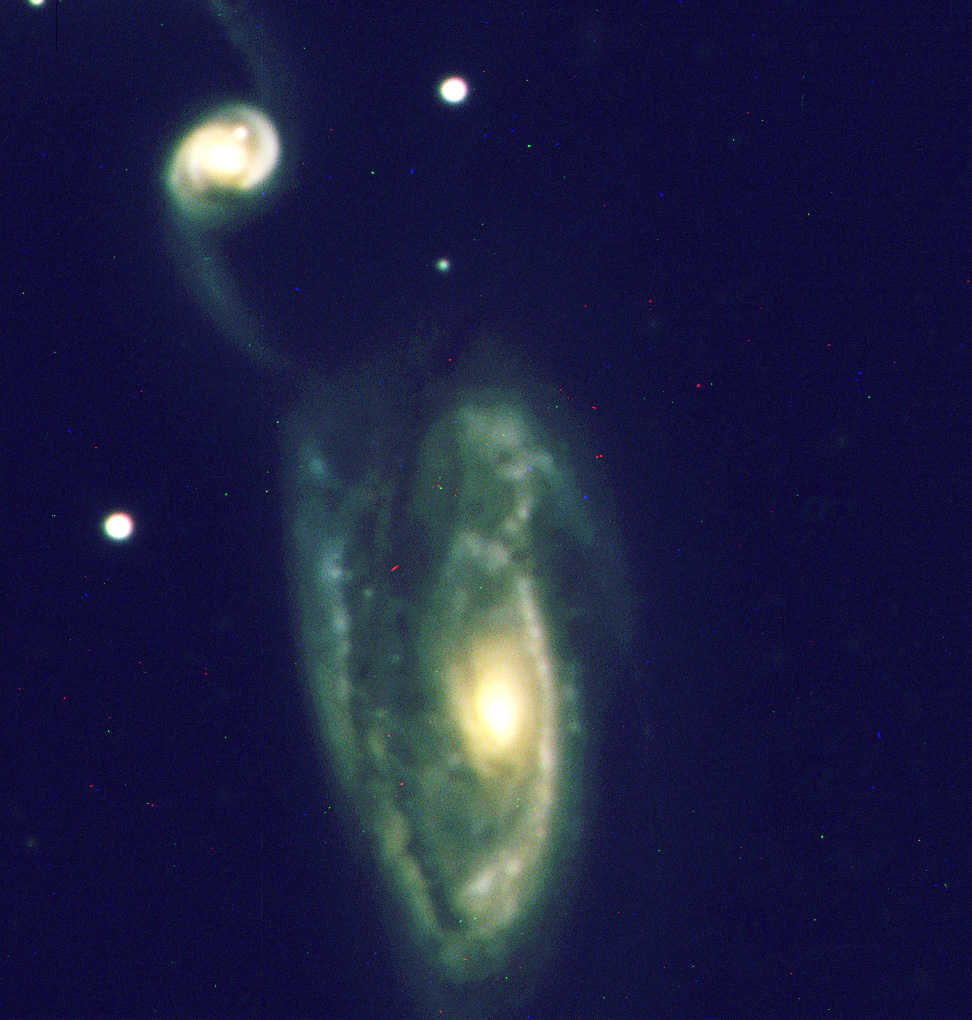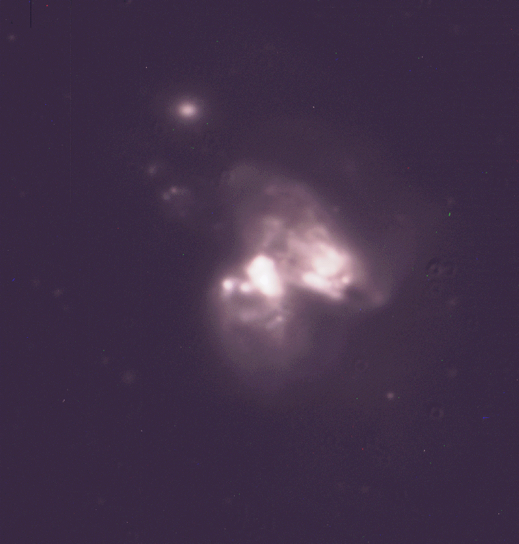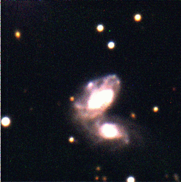 the right galaxy in the image, and it is merging with NGC 3690, which is on the left. It has a