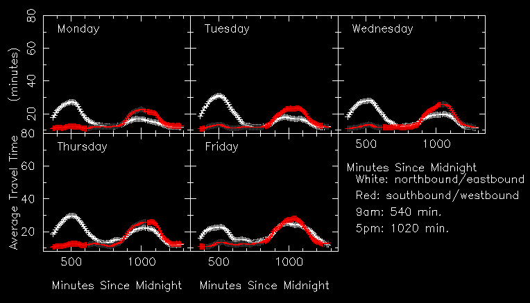 Southbound mean travel time: 12.1 min. (am) 24.9 min. (pm) 13.8 min. (other)