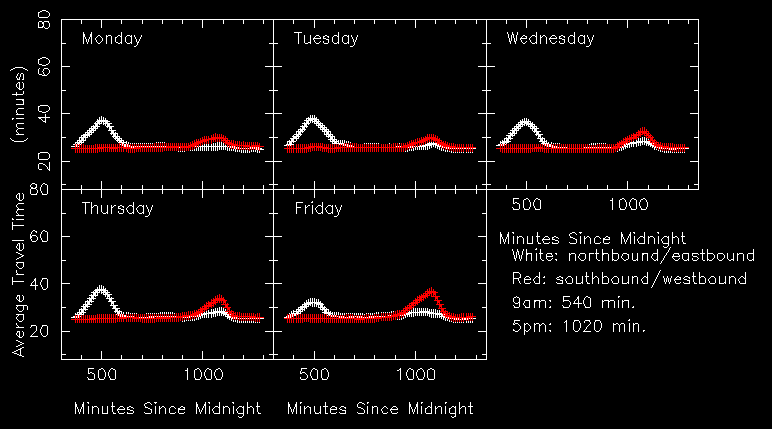 Southbound mean travel time: 23.6 min. (am) 32.7 min. (pm) 21.9 min. (other)