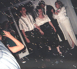 The rehearsal dinner was held at the Franklin Club. Here's the head table. And Kevin blowing bubbles.