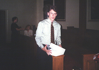 The rehearsal was held the night before the wedding. Here I am walking down the aisle. Here are Bill and I rehearsing the ceremony. And