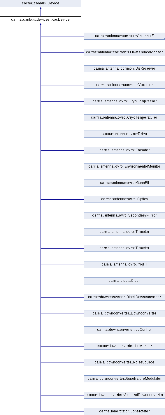 Reimplemented in carma::antenna::ovro::Drive, carma::antenna::common::AntennaIF, carma::antenna::common::SisReceiver, carma::antenna::ovro::Tiltmeter, carma::antenna::ovro::Encoder, carma::downconverter::LoMonitor, carma::antenna::ovro::SecondaryMirror, carma::downconverter::QuadratureModulator, carma::antenna::ovro::CryoCompressor, carma::downconverter::NoiseSource, carma::downconverter::SpectralDownconverter, carma::antenna::common::LOReferenceMonitor, carma::antenna::ovro::Tiltmeter, carma::antenna::ovro::Optics, carma::downconverter::Downconverter, carma::antenna::ovro::GunnPll, carma::antenna::ovro::YigPll, carma::antenna::common::Varactor, carma::downconverter::LoControl, carma::antenna::ovro::EnvironmentalMonitor, carma::antenna::ovro::CryoTemperatures, and carma::downconverter::BlockDownconverter.