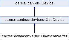 This class implements the carma::canbus::Device base class for Carma CAN API 130 describing the Wideband Downconverter CAN device.