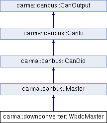 This class realizes the carma::canbus::Master class for the Carma Wideband Downconverter CANbus system. It instantiates 128 Downconverter devices, 8 QuadratureModulator devices and a NoiseSource device which reside on the Wideband Downconverter CAN network. It is then responsible for managing them, placing device and CANbus monitor data into the monitor stream and simulating OFFLINE devices.