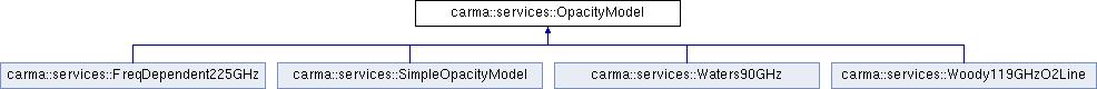 Implemented in carma::services::SimpleOpacityModel, carma::services::Waters90GHz, carma::services::FreqDependent225GHz, and carma::services::Woody119GHzO2Line.