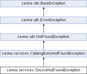 create an SourceNotFoundException Recommended usage: CARMA_EXCEPTION(SourceNotFoundException, ostringstream msg); More... | |