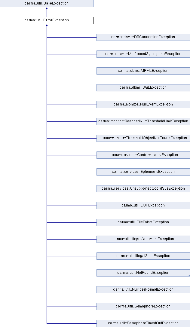 Exception class for errors The exception comes with a text string that can be printed or logged.