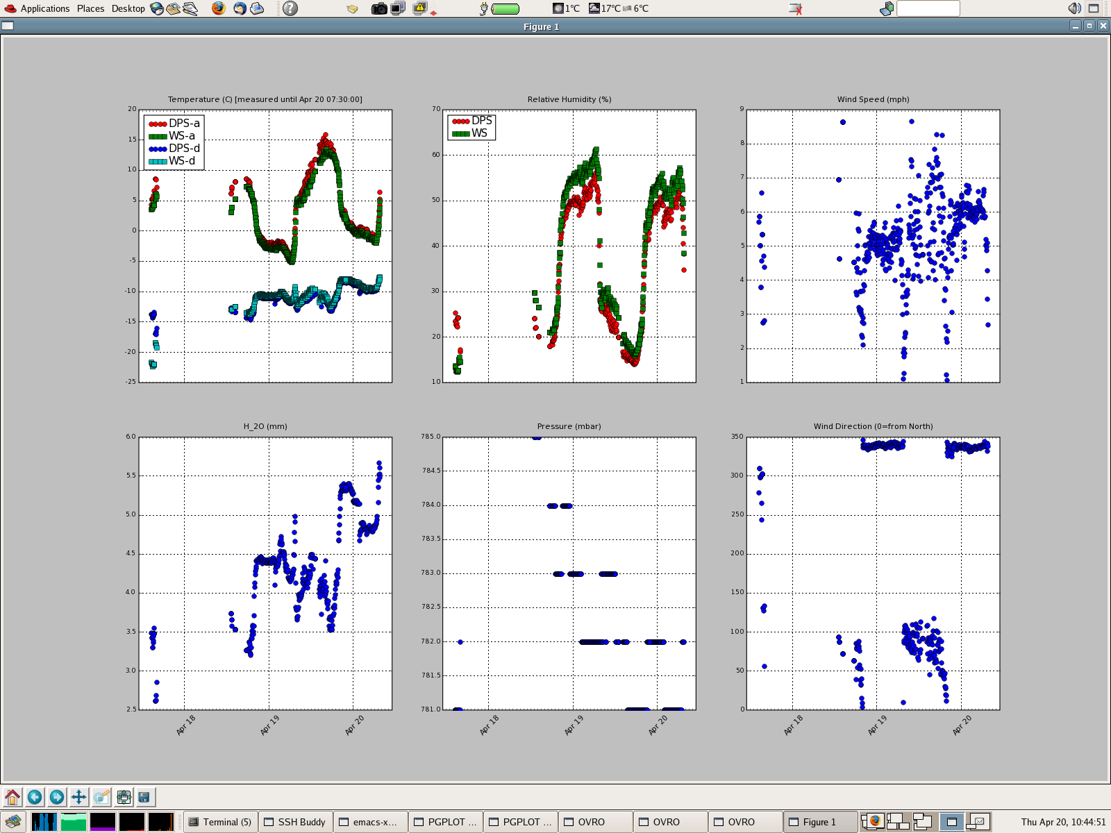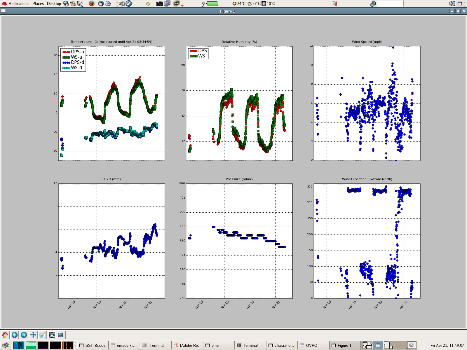 - run1 a 7 hour stretch of comparing Ta,Td,RH from WS and DPS. (april 21)