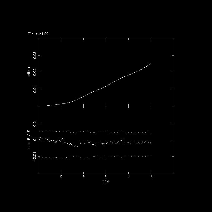 snapdiagplot run1.02 321 diagnostic frames read Worst fractional energy loss dE/E = (E_t-E_0)/E_0 = -0.00418689 at T = 3.09375