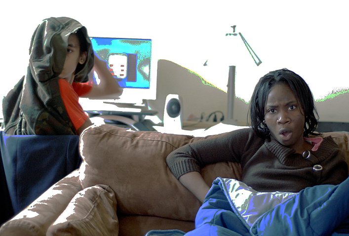 Roald and Funmi watching a scary movie (War of the Worlds)