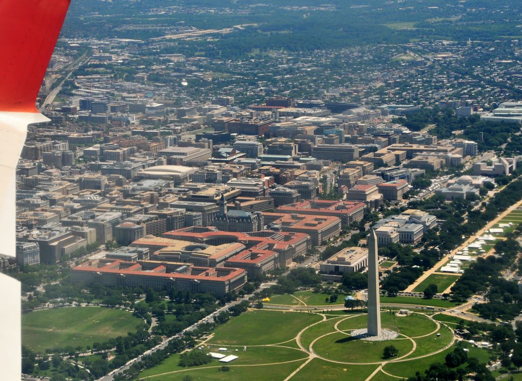 Unveiling the Mass -- taking off from DCA gives you a 1:4 chance to see this, also note the geografic center of the US on the left circle.