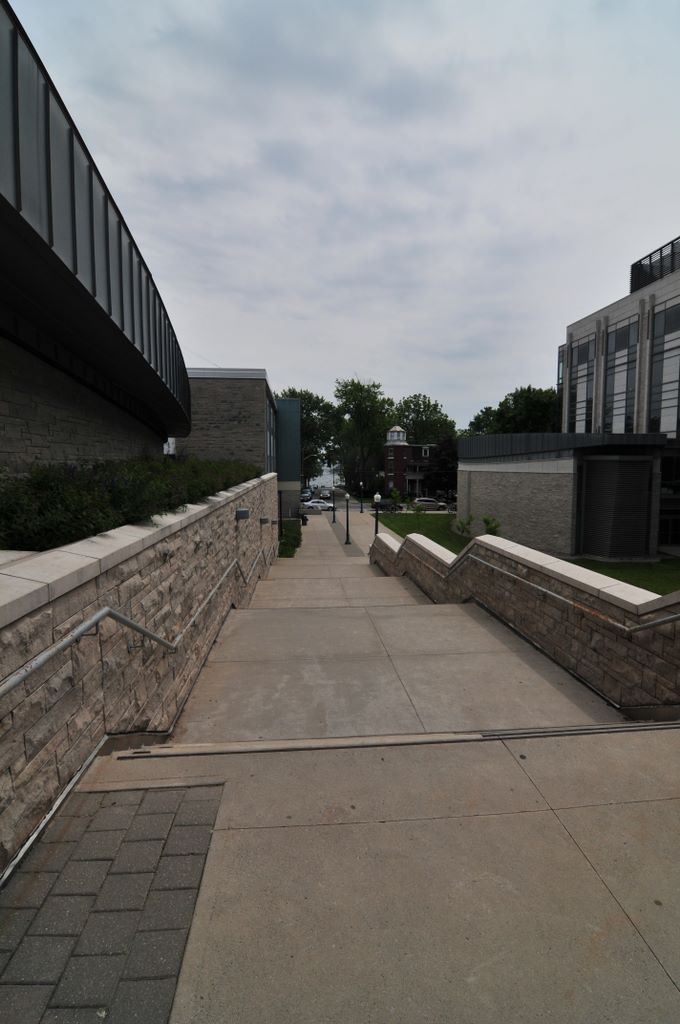 Unveiling the Mass -- the quiet stairs. lake in the background.