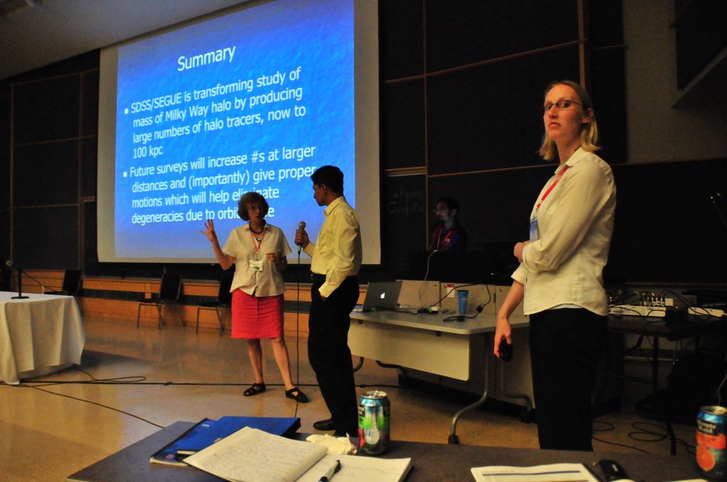 Unveiling the Mass -- Raja, the next speaker, asking a question to the previous speaker. Kristine not amused?!