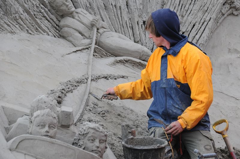 Leiden2010 -- sand sculptures in the making on the Scheveningen beach