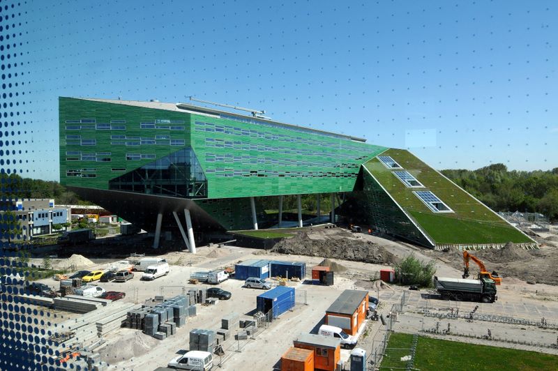 Leiden2010 -- the new Biology building as seen through the blue glass of the physics building