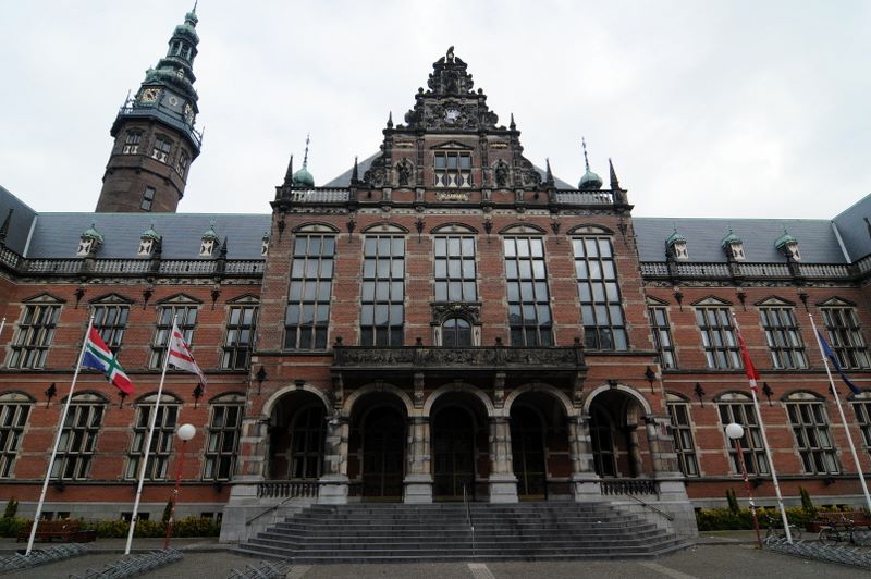 Leiden2010 -- academie gebouw, the main building of Groningen U, where I did my defense. Notice where all the flags are from.