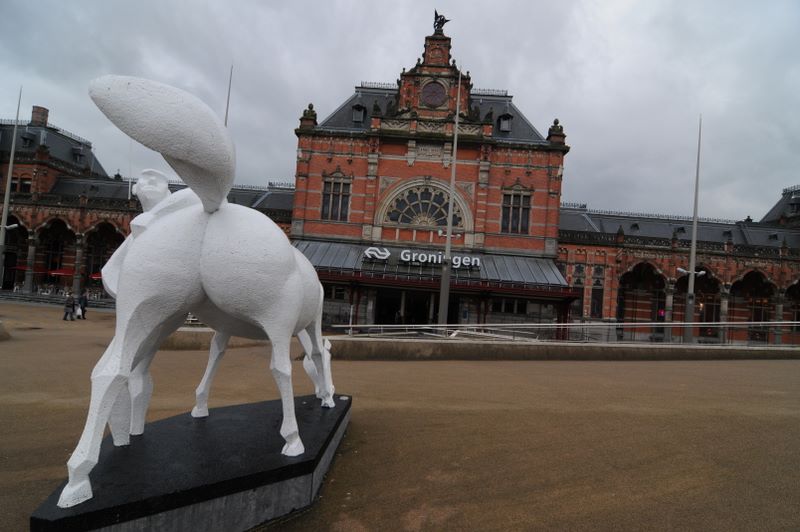Leiden2010 -- Peerd van Ome Loeks: a famous statue in Groningen. Below this is the bike parking.
