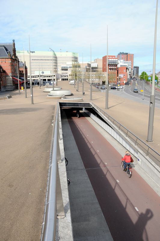 Leiden2010 -- the bicycle parking garage at the station, now seen from above. You can see that white horse (Peerd van Ome Loeks) on the far end.