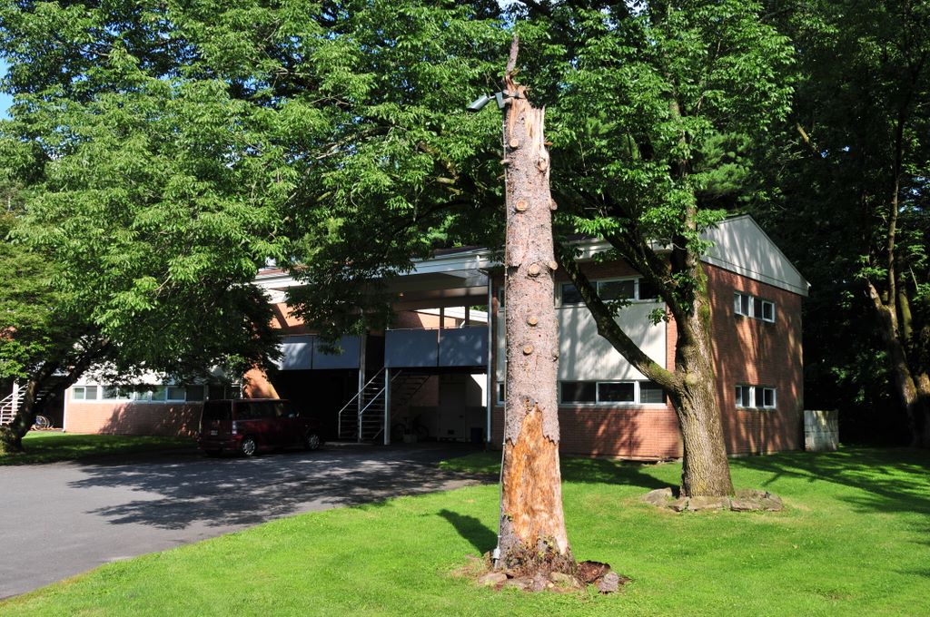 PiTP 2009 -- that tree stump with the flood light... and the apartment in the background. nicely shaded