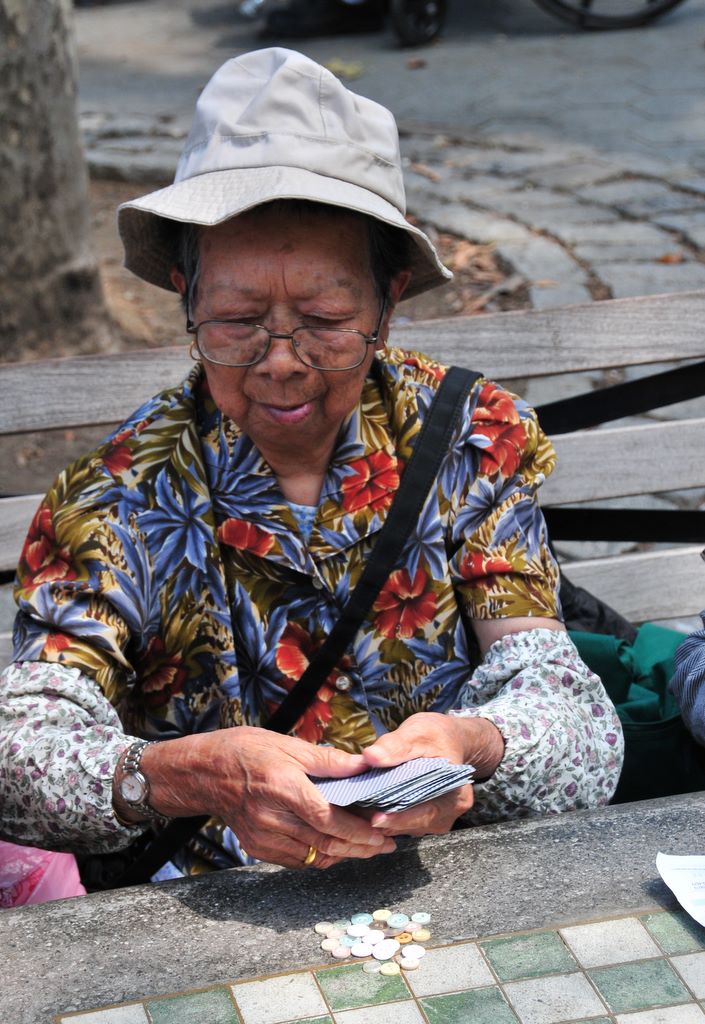 PiTP 2009 -- Fierce lady in Columbus Park, those are buttons they are using for payment!