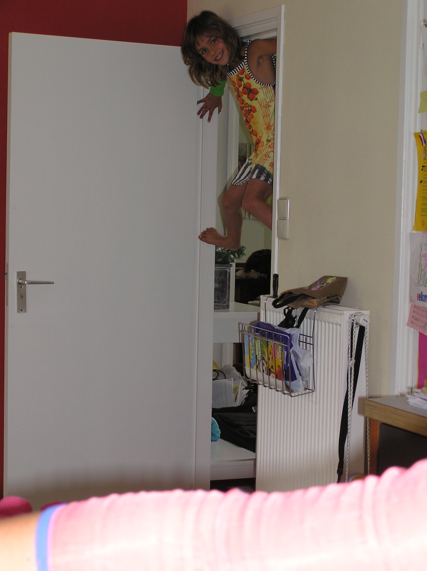 Nienke sure knows how to climb the door opening