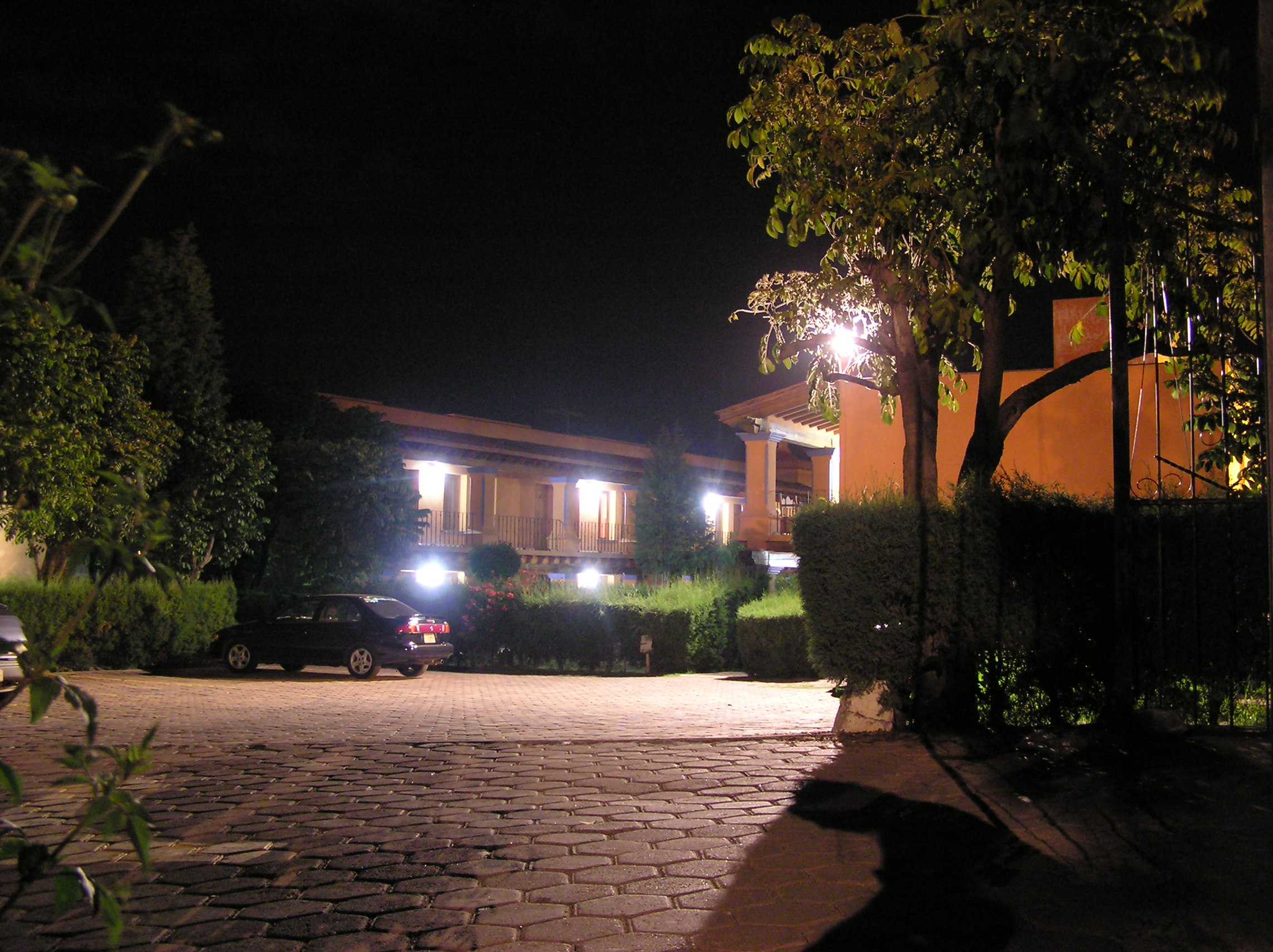 bungalows at night