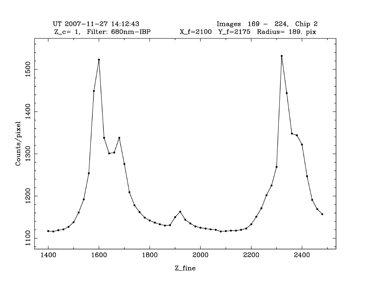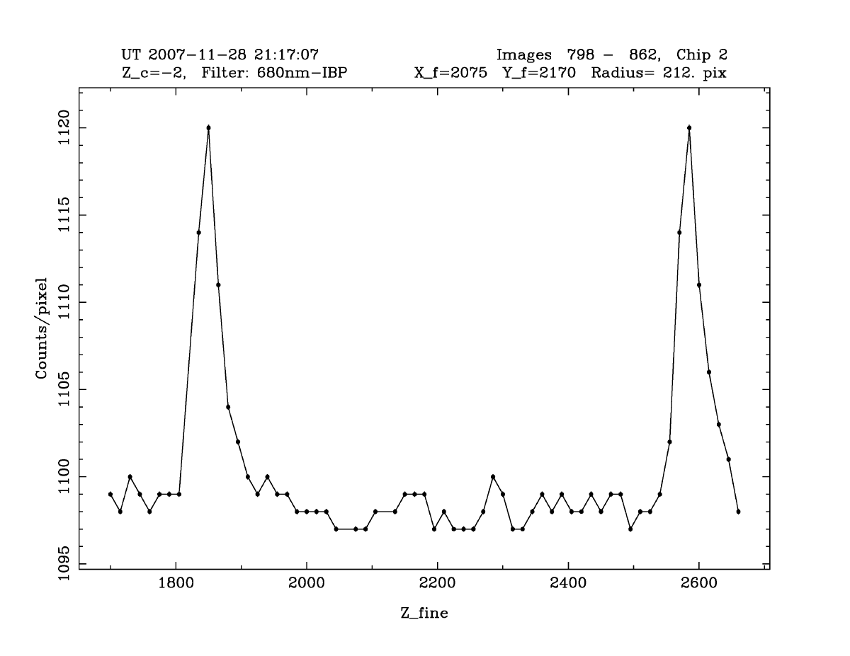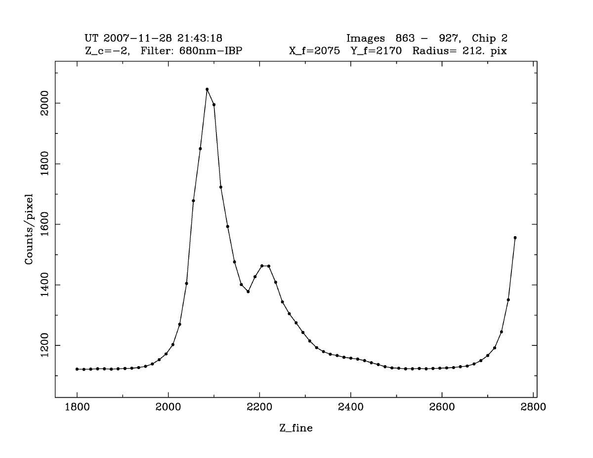 at the optical axis for the default instrument Zfine value